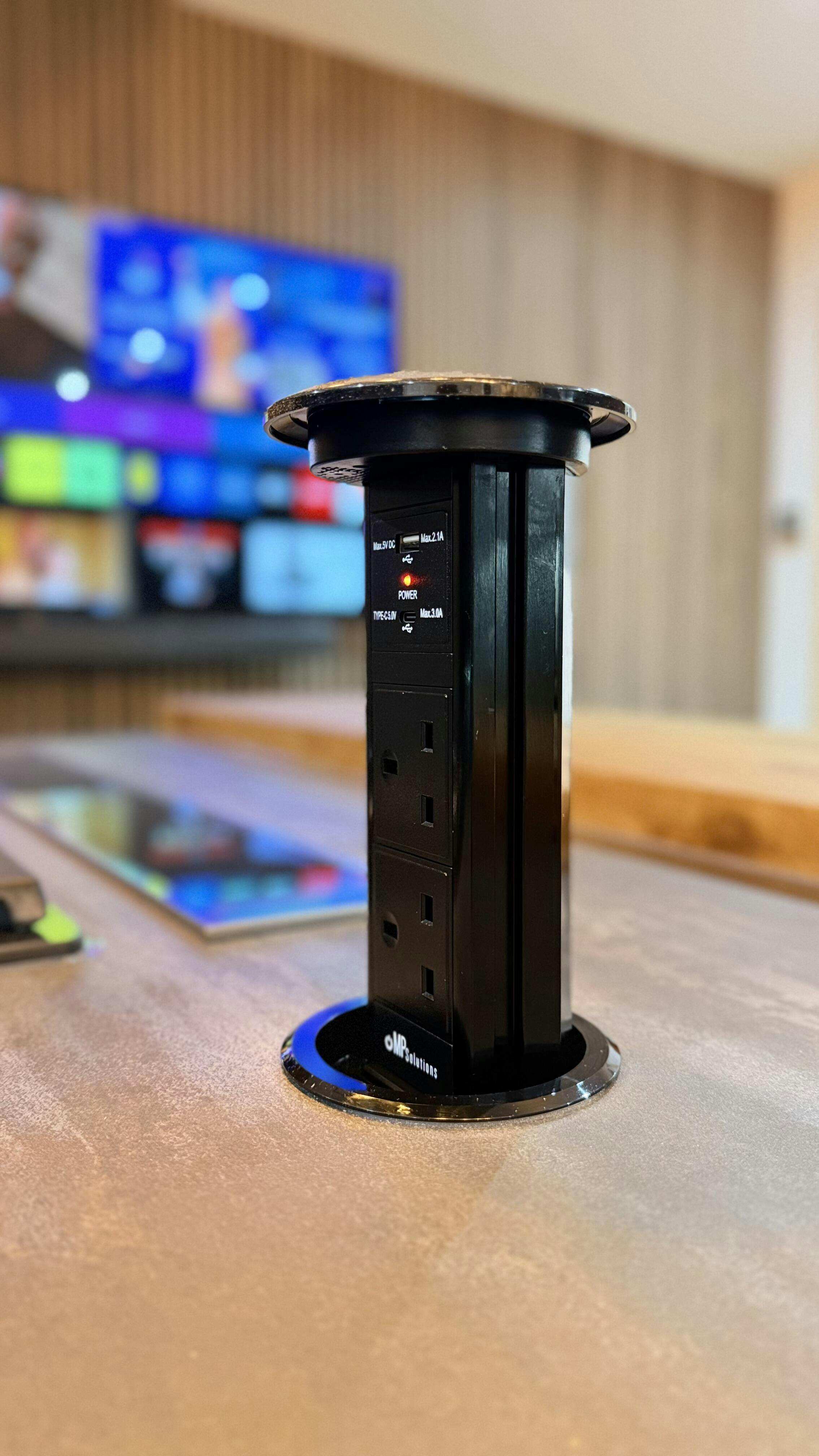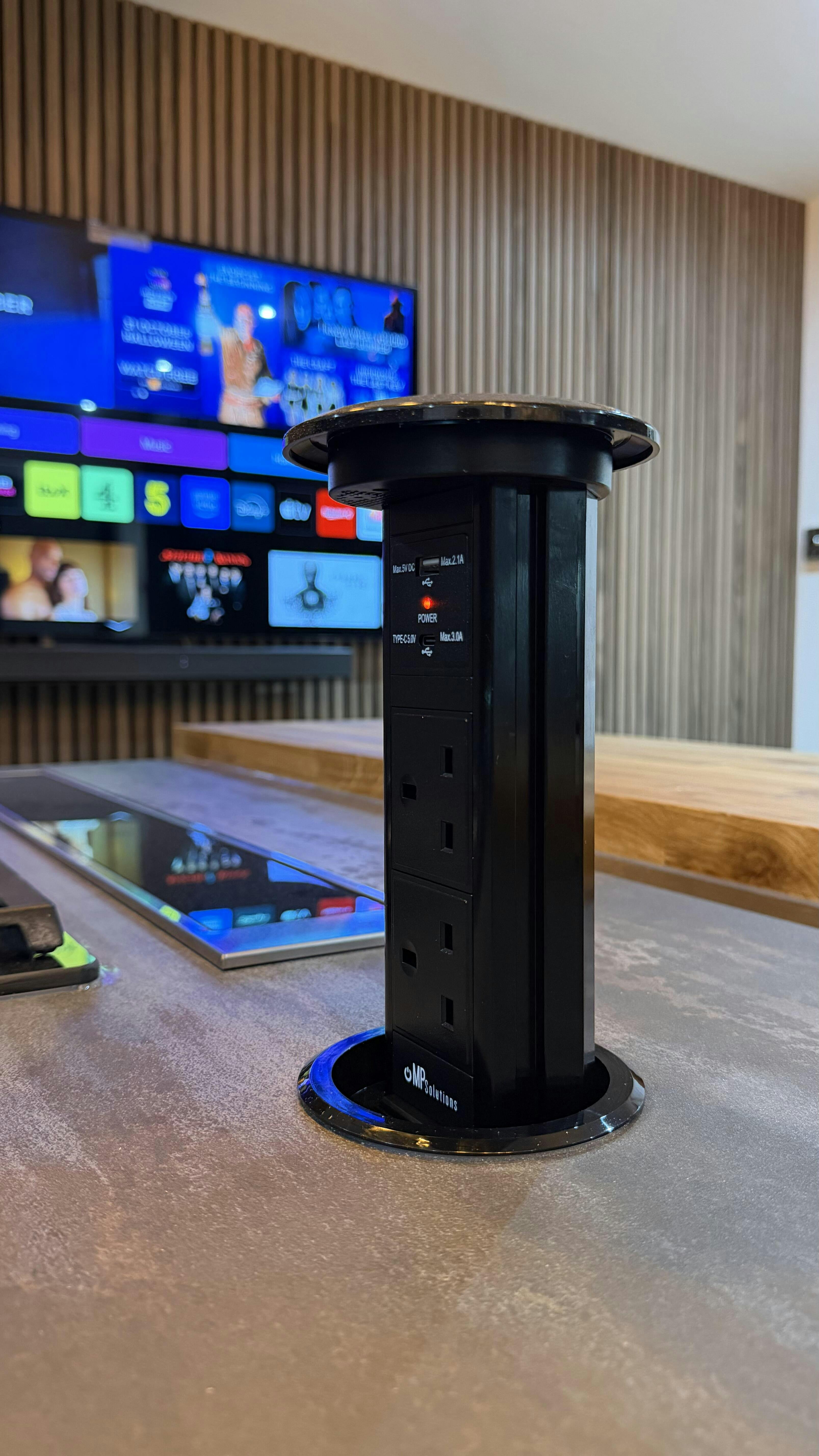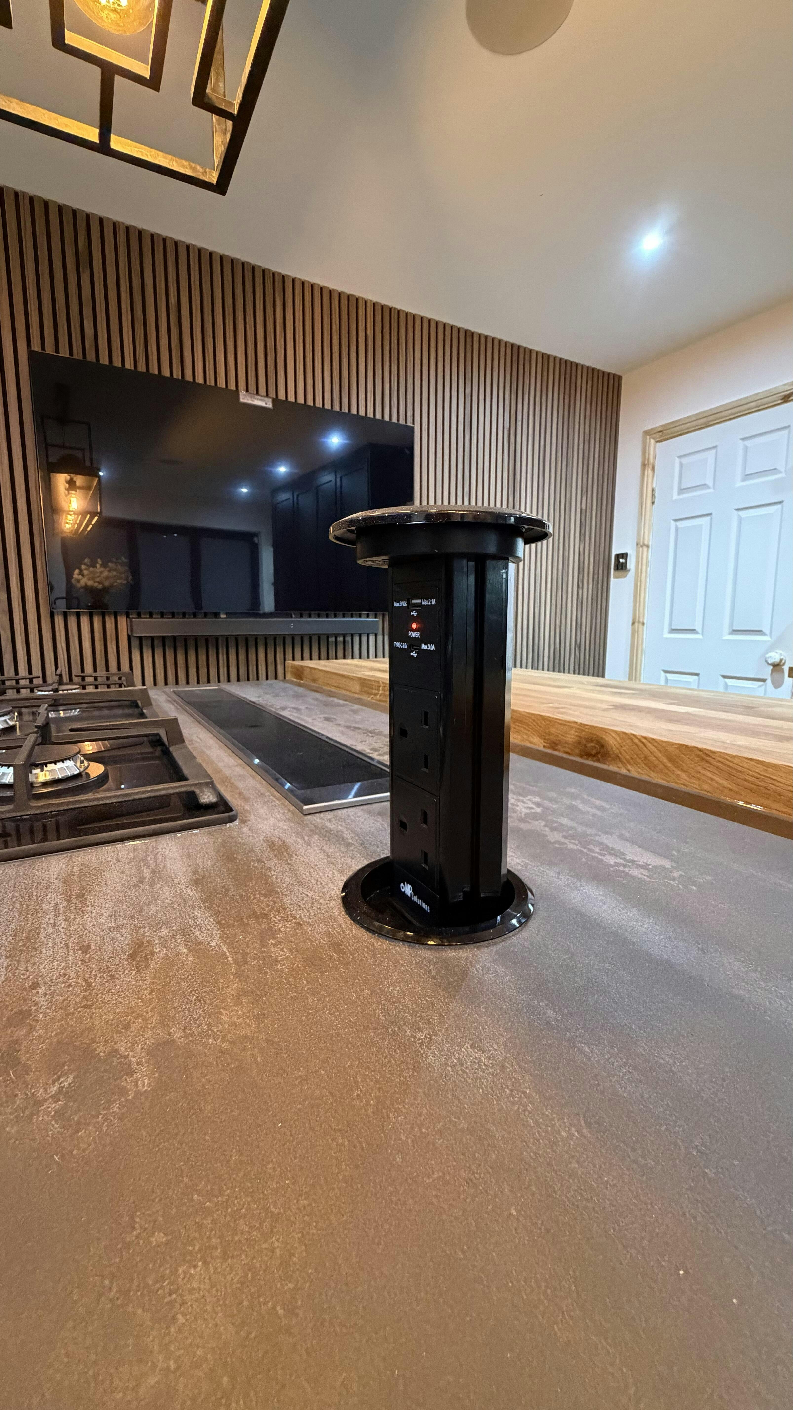 The V3C Motorised Pop Up Socket brings together sleek design and cutting-edge functionality, making it perfect for kitchen countertops. Featuring a glass top, USB ports (including USB-C), a spill-sealed lid, and a wireless charging surface, it delivers everything you need in one unit. With over a decade of expertise, Modern Power Solutions continues to lead the market in pop-up sockets.